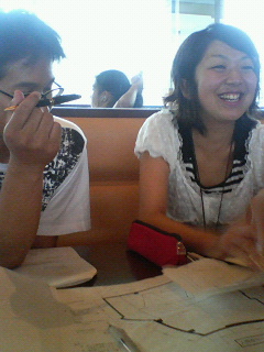 今日は舞台美術・ハマノさんと会議 in マクド。 舞台のラフプランを見て、イメージをつめました。 と、衣装小道具会議と同じ流れを繰り返す。 最近マクド出現率が高いーよっ。 ハマノの手が高速で動く! しぱぱぱぱぱぱぱぱーっとラフを書き上げます。なんて勢い!! が。アイディアに行き詰まりが。誰か助けて! |